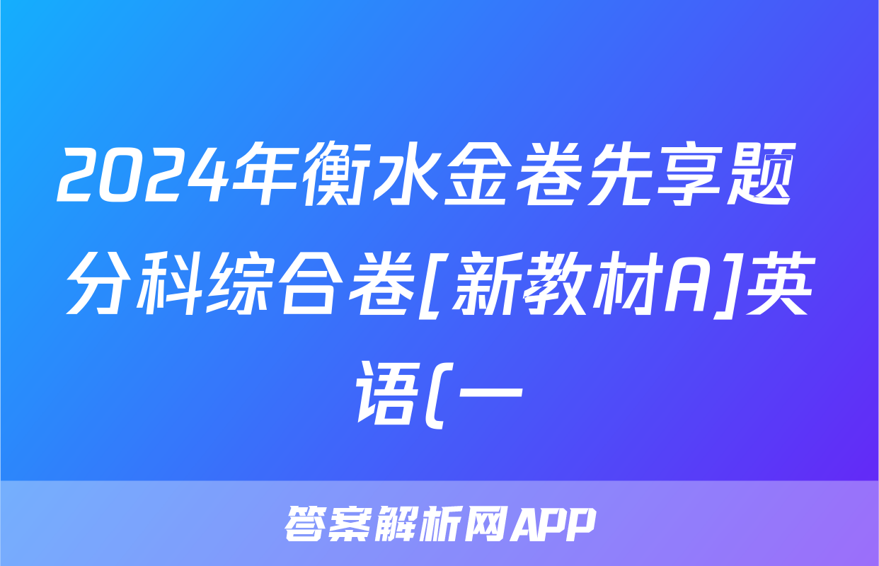 2024年衡水金卷先享题 分科综合卷[新教材A]英语(一)1试题正在持续更新,目前2026届黄冈八模答案网为大家整理了相关试题及答案,供大家查缺补漏,高效提升成绩。