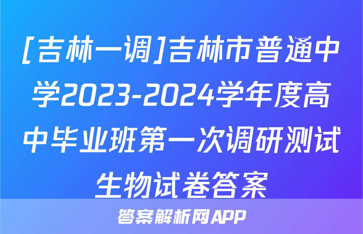 [吉林一调]吉林市普通中学2023-2024学年度高中毕业班第一次调研测试生物试卷答案正在持续更新,目前2026届黄冈八模答案网为大家整理了相关试题及答案,供大家查缺补漏,高效提升成绩。