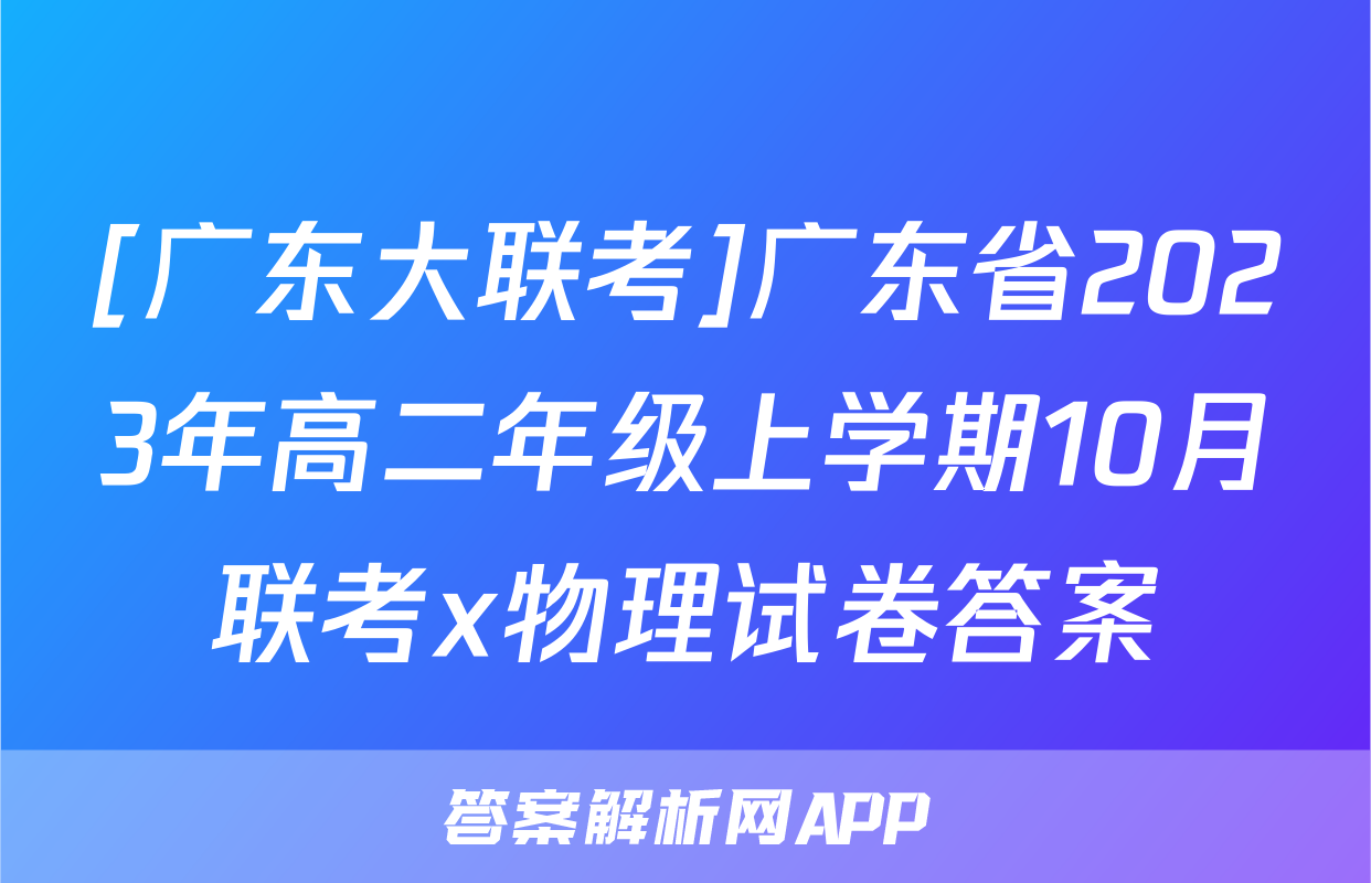 [广东大联考]广东省2023年高二年级上学期10月联考x物理试卷答案正在持续更新,目前2026届黄冈八模答案网为大家整理了相关试题及答案,供大家查缺补漏,高效提升成绩。