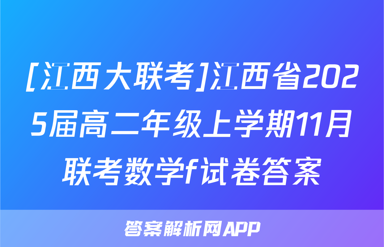 [江西大联考]江西省2025届高二年级上学期11月联考数学f试卷答案正在持续更新,目前2026届黄冈八模答案网为大家整理了相关试题及答案,供大家查缺补漏,高效提升成绩。