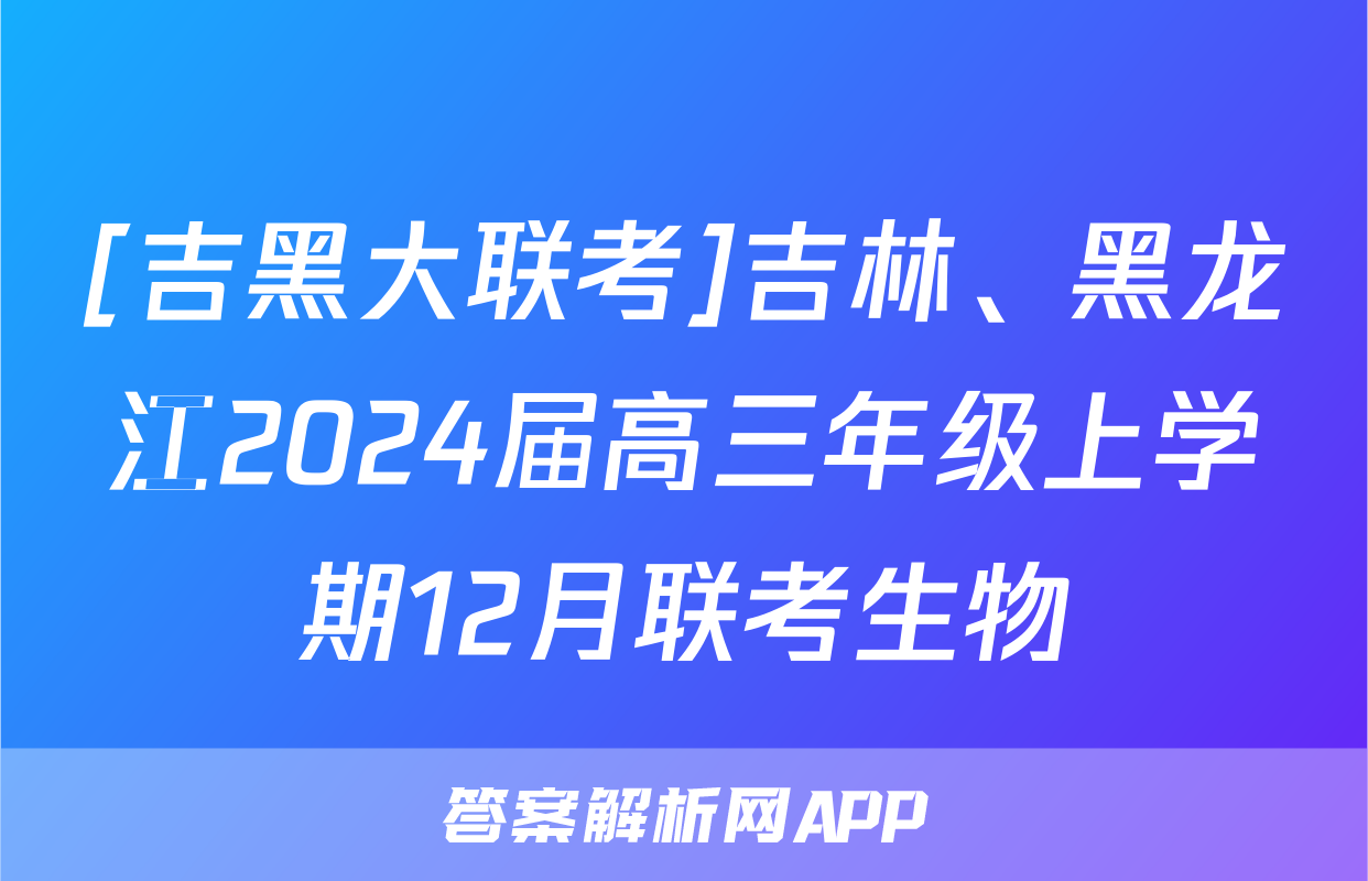 [吉黑大联考]吉林、黑龙江2024届高三年级上学期12月联考生物正在持续更新,目前2026届黄冈八模答案网为大家整理了相关试题及答案,供大家查缺补漏,高效提升成绩。