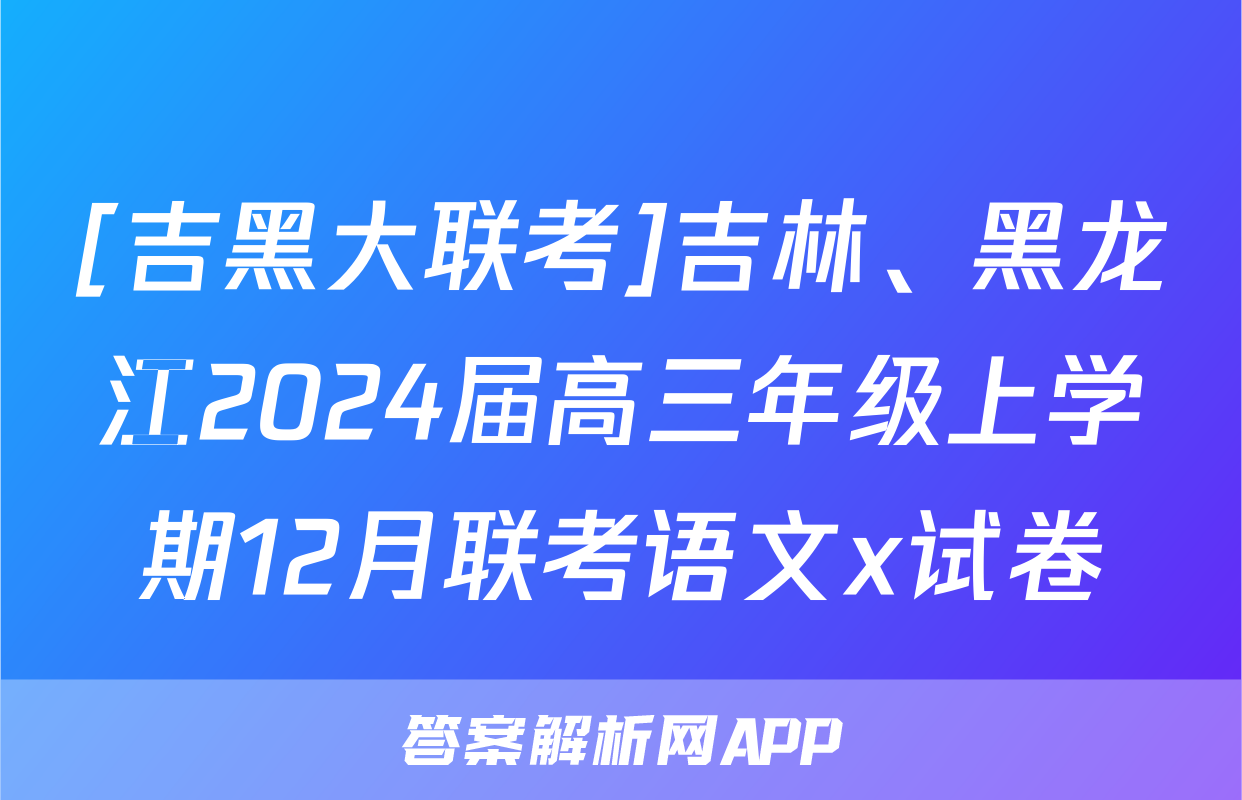 [吉黑大联考]吉林、黑龙江2024届高三年级上学期12月联考语文x试卷正在持续更新,目前2026届黄冈八模答案网为大家整理了相关试题及答案,供大家查缺补漏,高效提升成绩。