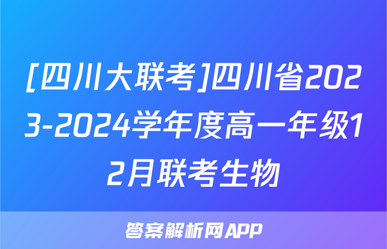 [四川大联考]四川省2023-2024学年度高一年级12月联考生物正在持续更新,目前2026届黄冈八模答案网为大家整理了相关试题及答案,供大家查缺补漏,高效提升成绩。