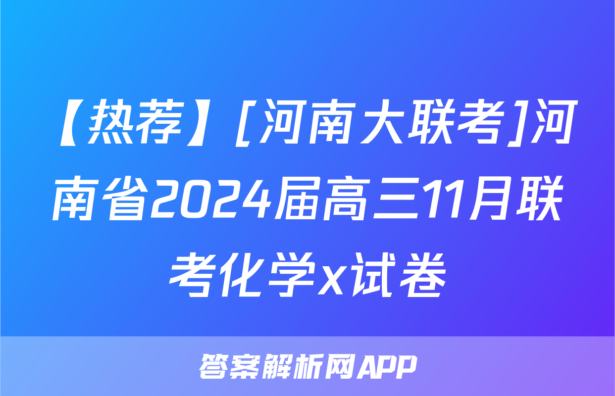 【热荐】[河南大联考]河南省2024届高三11月联考化学x试卷正在持续更新,目前2026届黄冈八模答案网为大家整理了相关试题及答案,供大家查缺补漏,高效提升成绩。