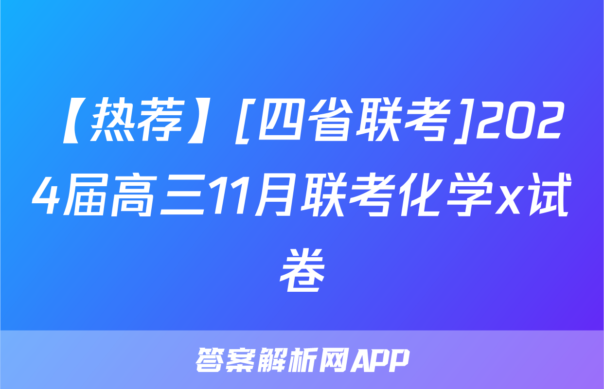 【热荐】[四省联考]2024届高三11月联考化学x试卷正在持续更新,目前2026届黄冈八模答案网为大家整理了相关试题及答案,供大家查缺补漏,高效提升成绩。