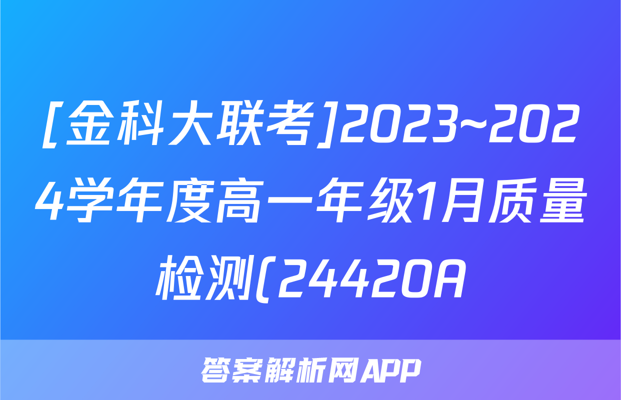 [金科大联考]2023~2024学年度高一年级1月质量检测(24420A)数学答案正在持续更新,目前2026届黄冈八模答案网为大家整理了相关试题及答案,供大家查缺补漏,高效提升成绩。
