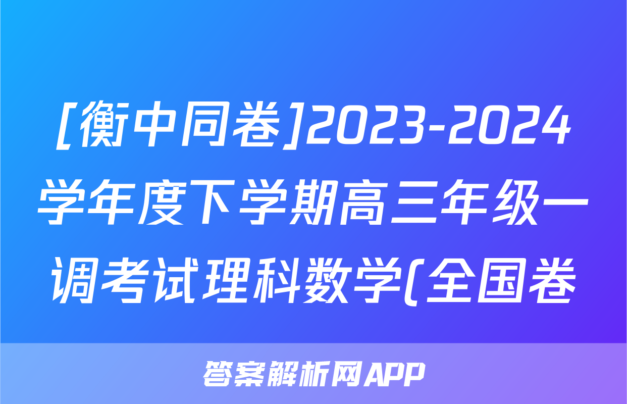 [衡中同卷]2023-2024学年度下学期高三年级一调考试理科数学(全国卷)答案正在持续更新,目前2026届黄冈八模答案网为大家整理了相关试题及答案,供大家查缺补漏,高效提升成绩。