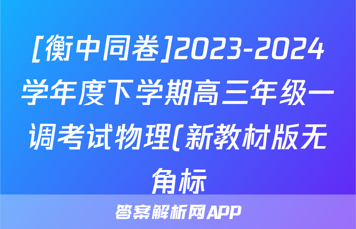 [衡中同卷]2023-2024学年度下学期高三年级一调考试物理(新教材版无角标)答案正在持续更新,目前2026届黄冈八模答案网为大家整理了相关试题及答案,供大家查缺补漏,高效提升成绩。