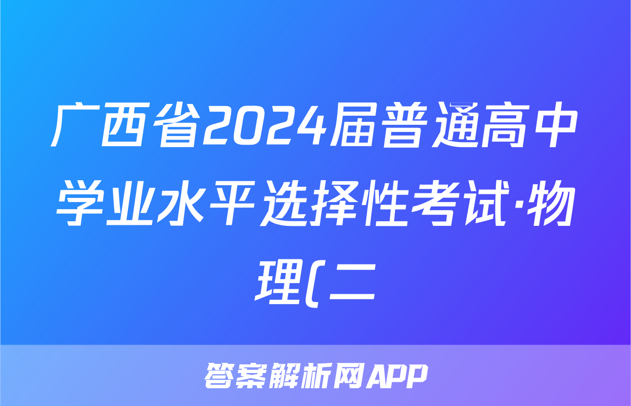 广西省2024届普通高中学业水平选择性考试·物理(二)2[24·(新高考)ZX·MNJ·物理·GX]答案正在持续更新,目前2026届黄冈八模答案网为大家整理了相关试题及答案,供大家查缺补漏,高效提升成绩。