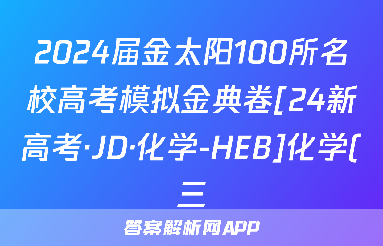 2024届金太阳100所名校高考模拟金典卷[24新高考·JD·化学-HEB]化学(三)3答案正在持续更新,目前2026届黄冈八模答案网为大家整理了相关试题及答案,供大家查缺补漏,高效提升成绩。