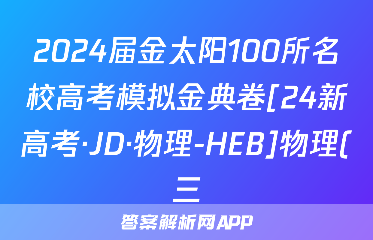 2024届金太阳100所名校高考模拟金典卷[24新高考·JD·物理-HEB]物理(三)3答案正在持续更新,目前2026届黄冈八模答案网为大家整理了相关试题及答案,供大家查缺补漏,高效提升成绩。