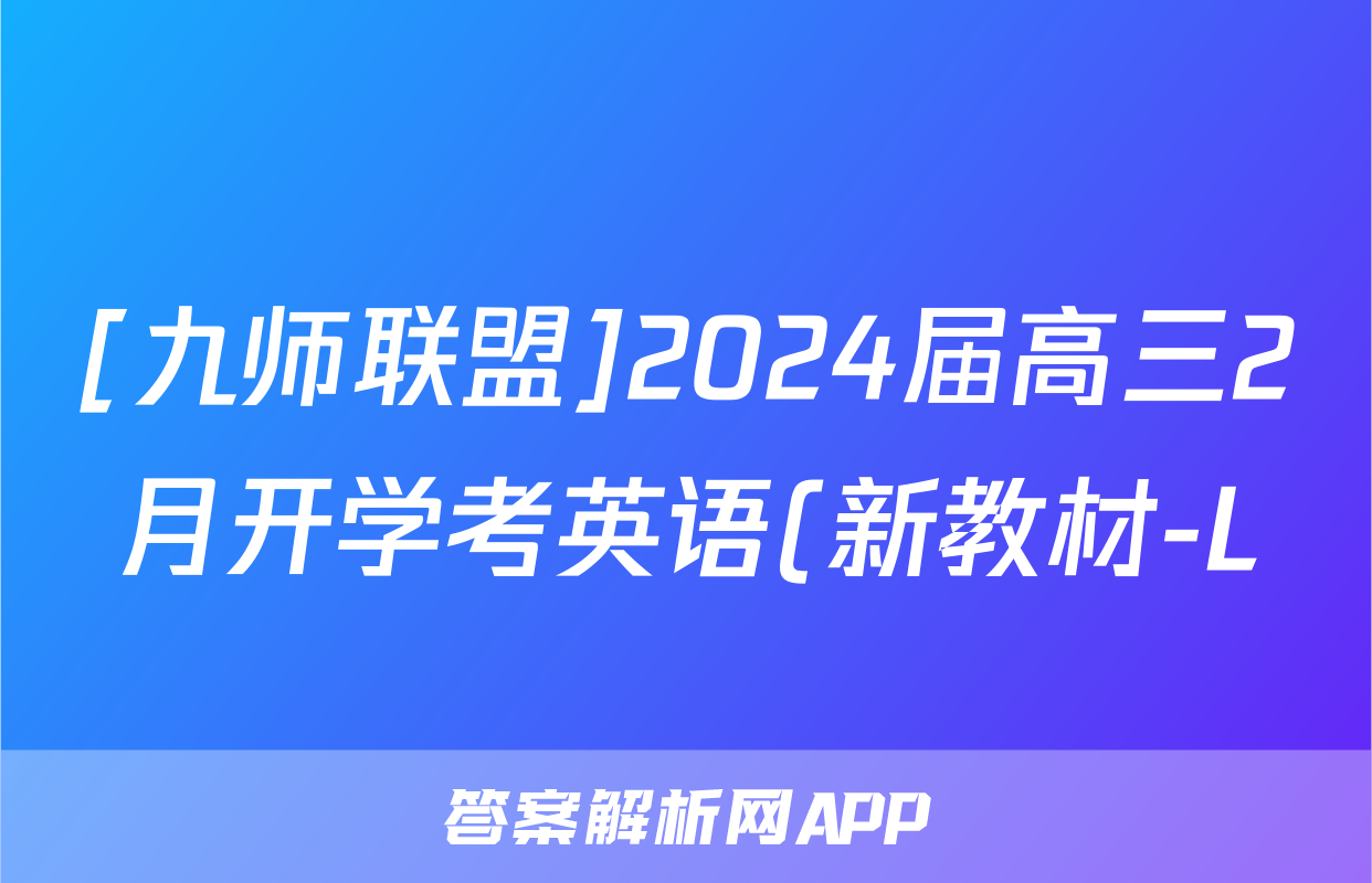 [九师联盟]2024届高三2月开学考英语(新教材-L)试题正在持续更新,目前2026届黄冈八模答案网为大家整理了相关试题及答案,供大家查缺补漏,高效提升成绩。