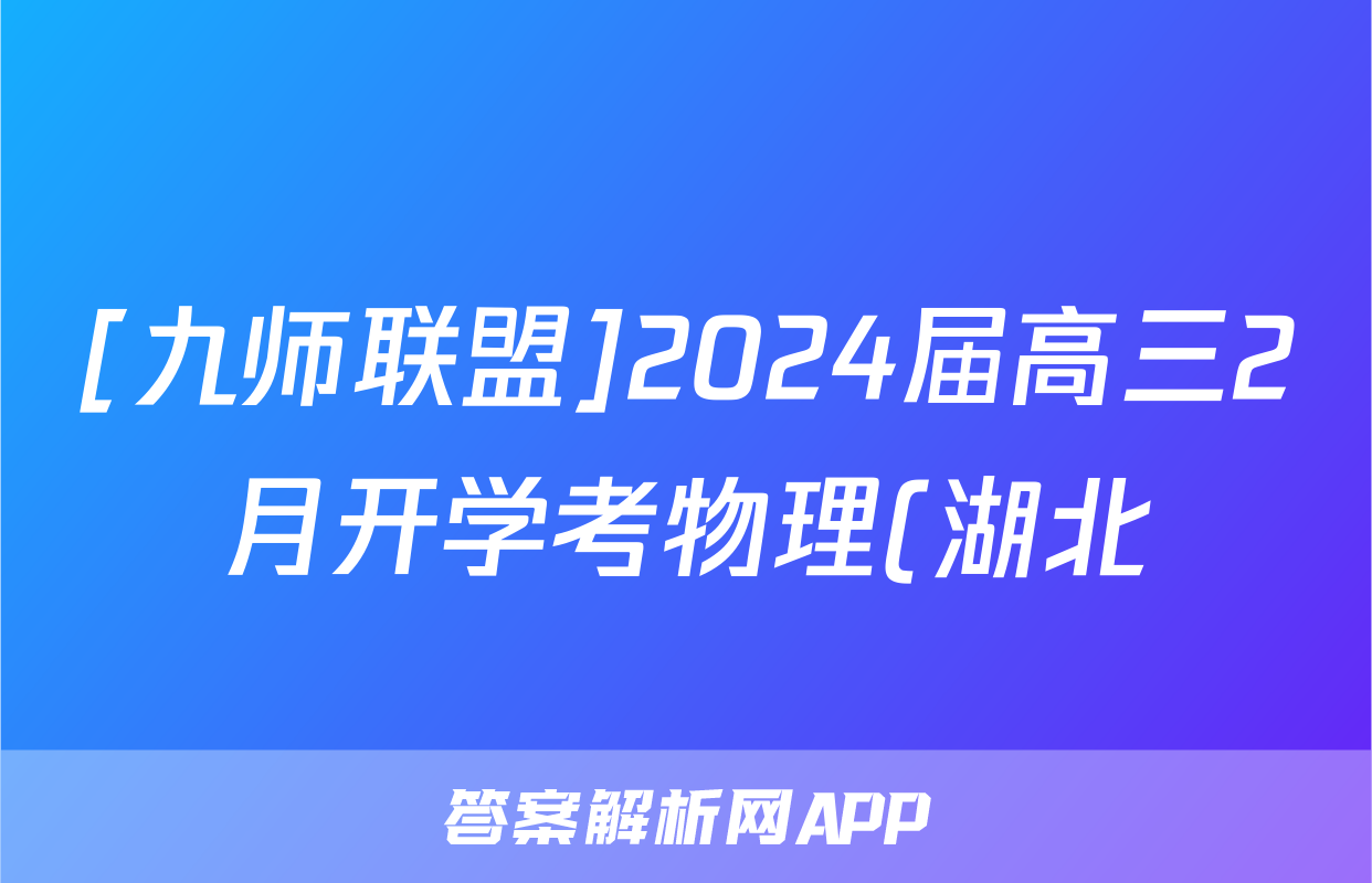 [九师联盟]2024届高三2月开学考物理(湖北)试题正在持续更新,目前2026届黄冈八模答案网为大家整理了相关试题及答案,供大家查缺补漏,高效提升成绩。