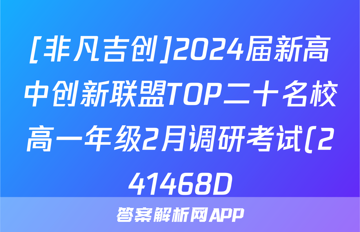 1、非凡吉创 2024届新高中创新联盟TOP二十名校高一年级2月调研