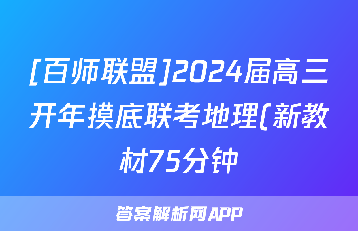 [百师联盟]2024届高三开年摸底联考地理(新教材75分钟)答案正在持续更新,目前2026届黄冈八模答案网为大家整理了相关试题及答案,供大家查缺补漏,高效提升成绩。