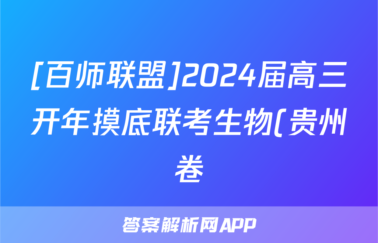 [百师联盟]2024届高三开年摸底联考生物(贵州卷)试题正在持续更新,目前2026届黄冈八模答案网为大家整理了相关试题及答案,供大家查缺补漏,高效提升成绩。