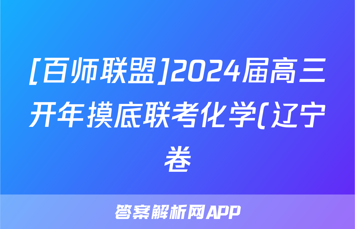 [百师联盟]2024届高三开年摸底联考化学(辽宁卷)试题正在持续更新,目前2026届黄冈八模答案网为大家整理了相关试题及答案,供大家查缺补漏,高效提升成绩。
