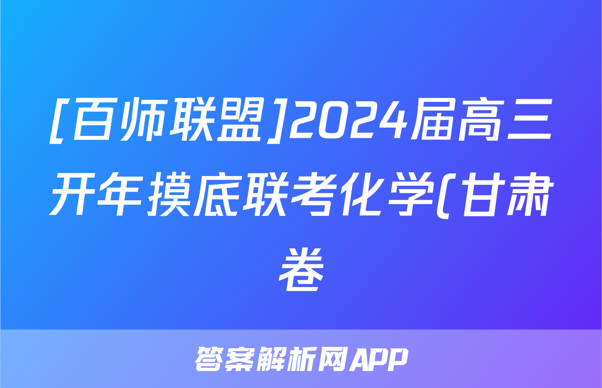[百师联盟]2024届高三开年摸底联考化学(甘肃卷)答案正在持续更新,目前2026届黄冈八模答案网为大家整理了相关试题及答案,供大家查缺补漏,高效提升成绩。
