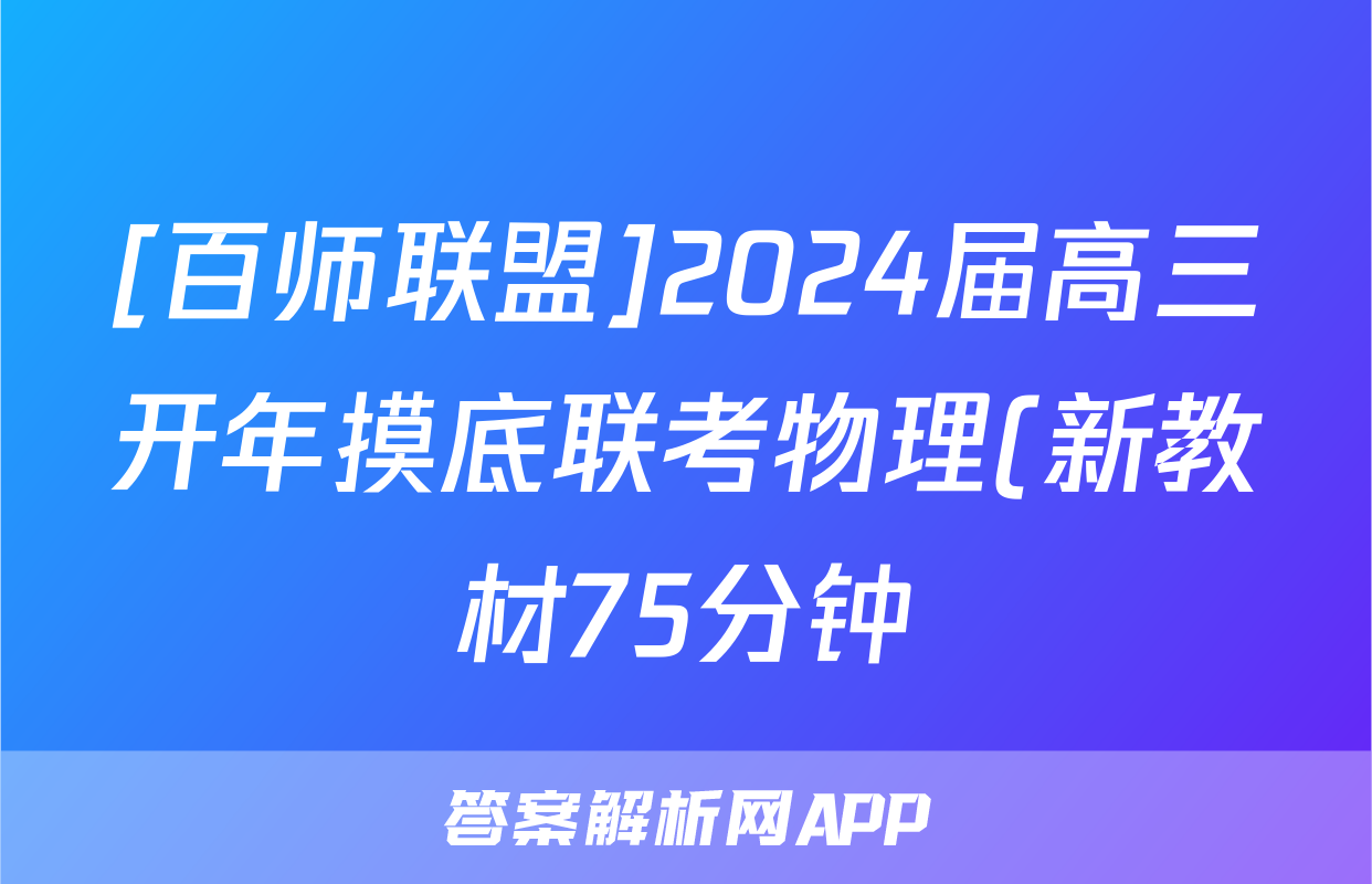 [百师联盟]2024届高三开年摸底联考物理(新教材75分钟)试题正在持续更新,目前2026届黄冈八模答案网为大家整理了相关试题及答案,供大家查缺补漏,高效提升成绩。