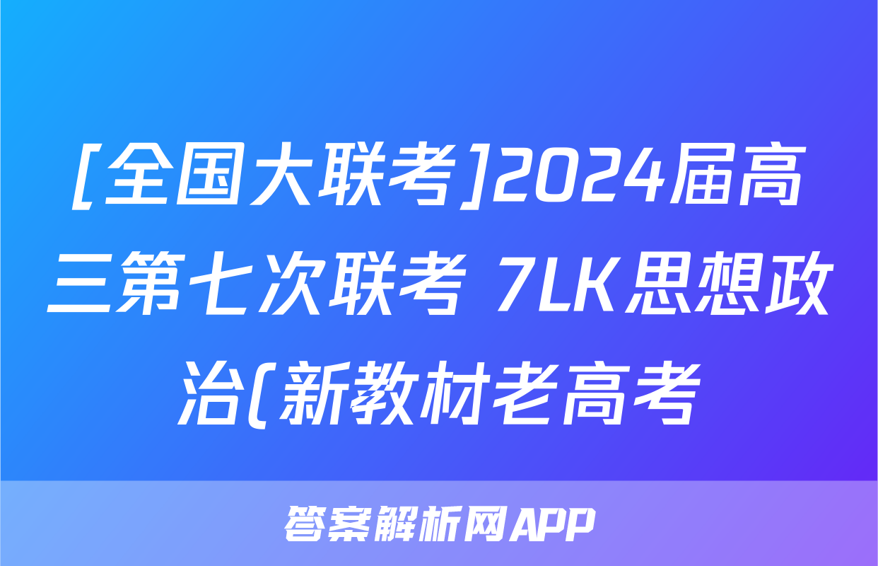 [全国大联考]2024届高三第七次联考 7LK思想政治(新教材老高考)答案正在持续更新,目前2026届黄冈八模答案网为大家整理了相关试题及答案,供大家查缺补漏,高效提升成绩。