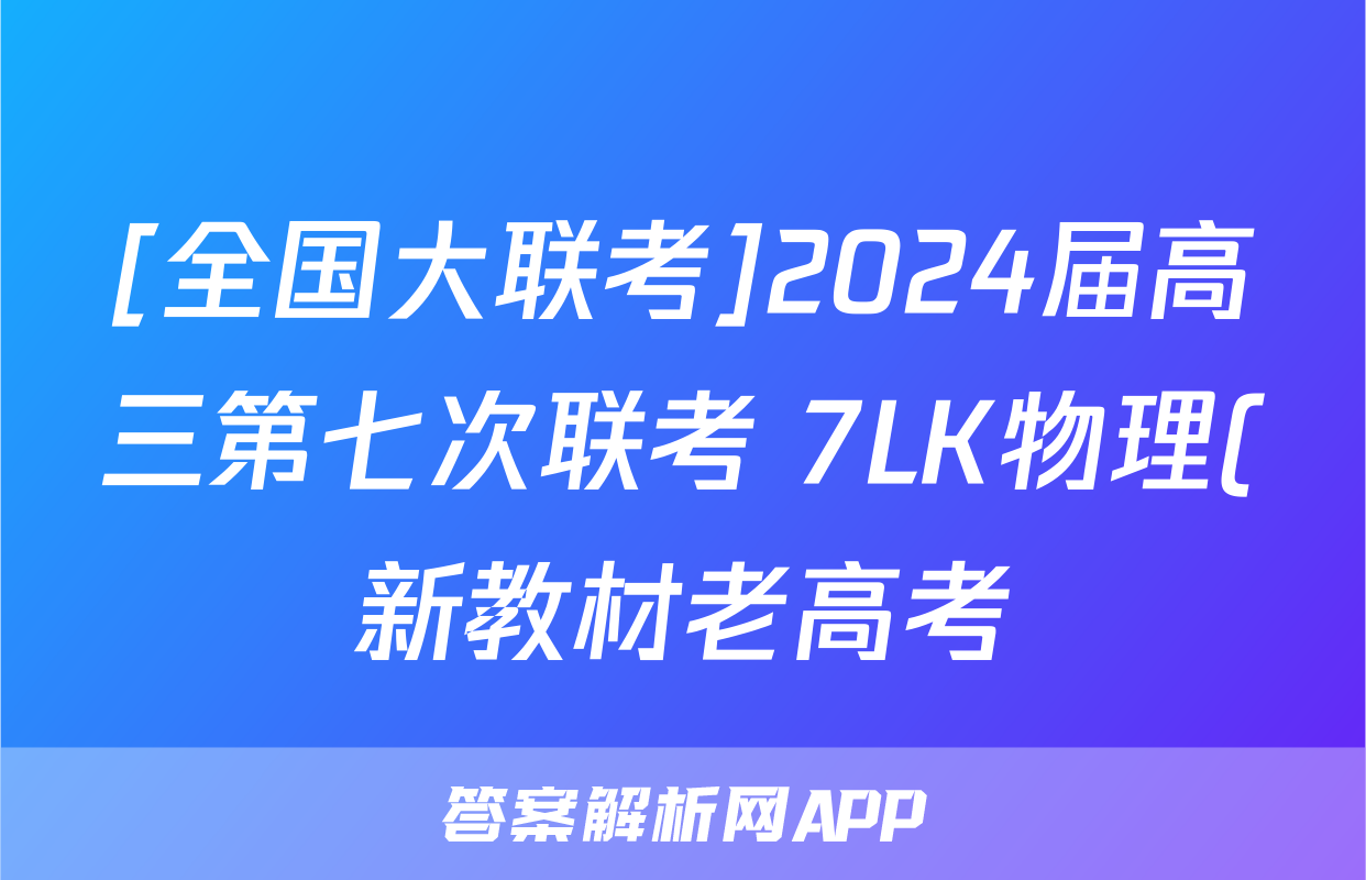 [全国大联考]2024届高三第七次联考 7LK物理(新教材老高考)答案正在持续更新,目前2026届黄冈八模答案网为大家整理了相关试题及答案,供大家查缺补漏,高效提升成绩。