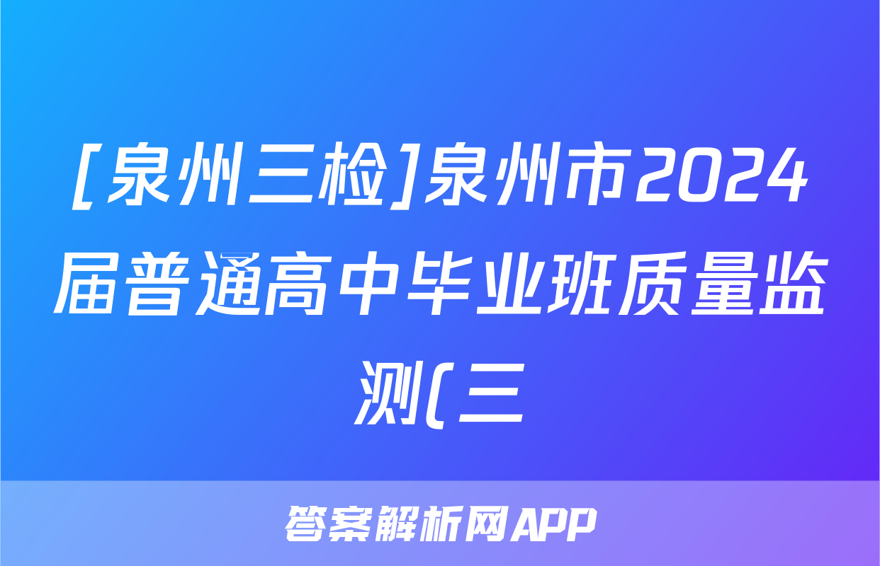 [泉州三检]泉州市2024届普通高中毕业班质量监测(三)化学试题正在持续更新,目前2026届黄冈八模答案网为大家整理了相关试题及答案,供大家查缺补漏,高效提升成绩。