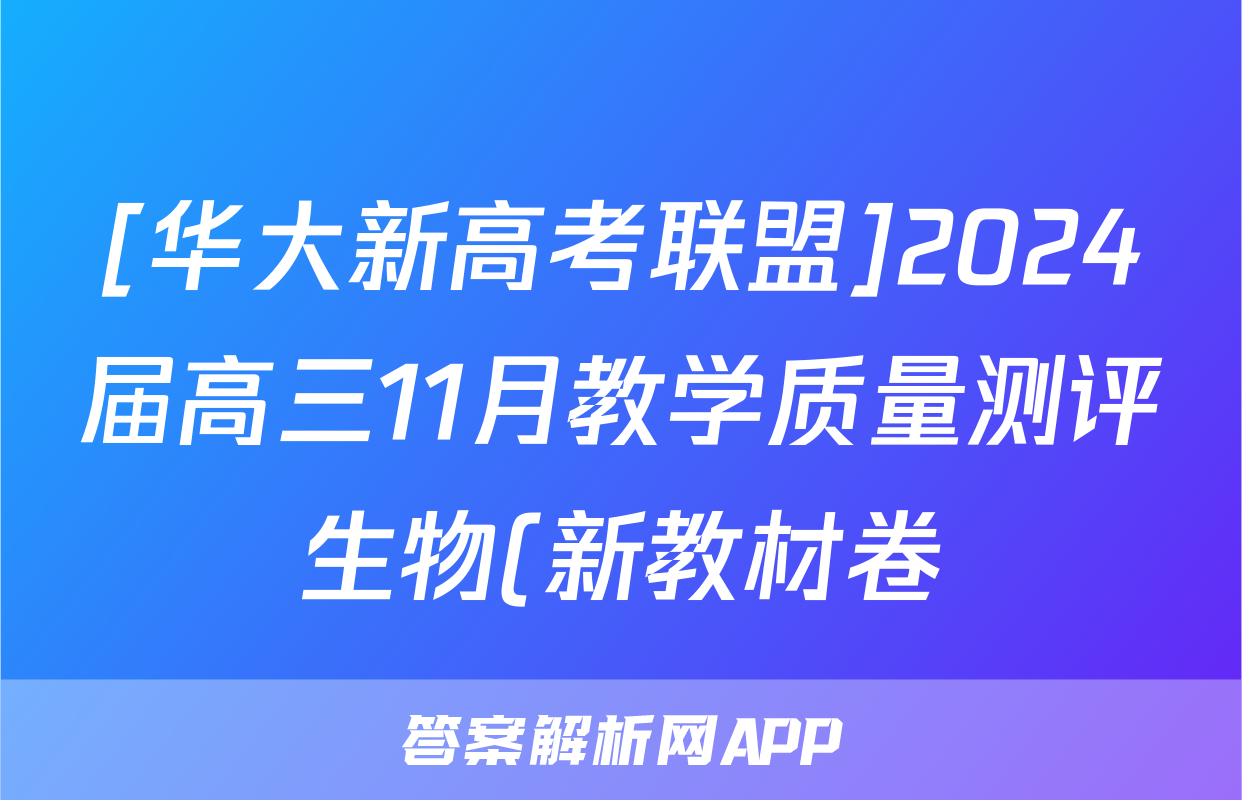 [华大新高考联盟]2024届高三11月教学质量测评生物(新教材卷)试题正在持续更新,目前2026届黄冈八模答案网为大家整理了相关试题及答案,供大家查缺补漏,高效提升成绩。