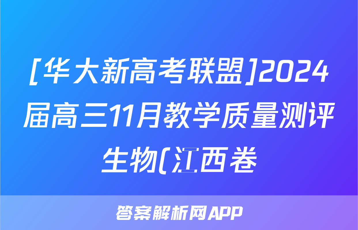 [华大新高考联盟]2024届高三11月教学质量测评生物(江西卷)试题正在持续更新,目前2026届黄冈八模答案网为大家整理了相关试题及答案,供大家查缺补漏,高效提升成绩。