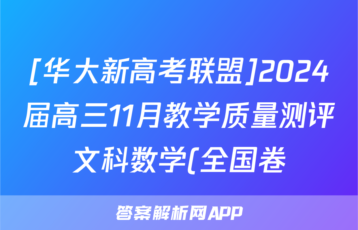 [华大新高考联盟]2024届高三11月教学质量测评文科数学(全国卷)答案正在持续更新,目前2026届黄冈八模答案网为大家整理了相关试题及答案,供大家查缺补漏,高效提升成绩。
