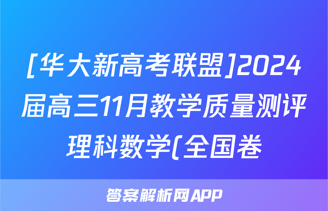 [华大新高考联盟]2024届高三11月教学质量测评理科数学(全国卷)答案正在持续更新,目前2026届黄冈八模答案网为大家整理了相关试题及答案,供大家查缺补漏,高效提升成绩。