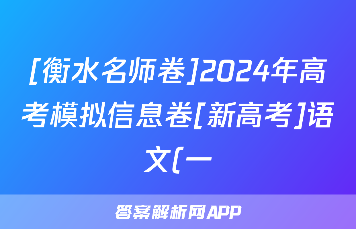 [衡水名师卷]2024年高考模拟信息卷[新高考]语文(一)1答案正在持续更新,目前2026届黄冈八模答案网为大家整理了相关试题及答案,供大家查缺补漏,高效提升成绩。