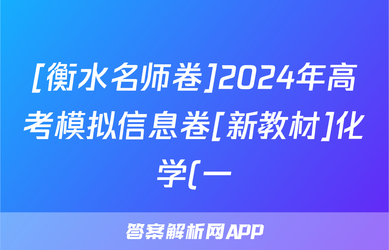[衡水名师卷]2024年高考模拟信息卷[新教材]化学(一)1试题正在持续更新,目前2026届黄冈八模答案网为大家整理了相关试题及答案,供大家查缺补漏,高效提升成绩。