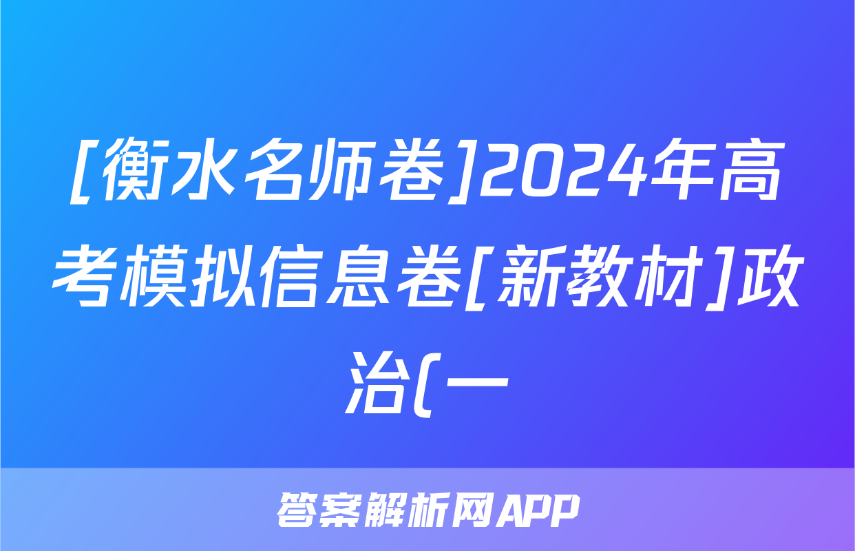 [衡水名师卷]2024年高考模拟信息卷[新教材]政治(一)1试题正在持续更新,目前2026届黄冈八模答案网为大家整理了相关试题及答案,供大家查缺补漏,高效提升成绩。