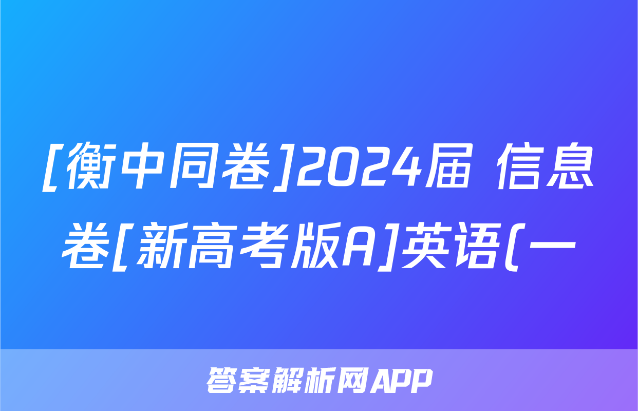 [衡中同卷]2024届 信息卷[新高考版A]英语(一)1答案正在持续更新,目前2026届黄冈八模答案网为大家整理了相关试题及答案,供大家查缺补漏,高效提升成绩。