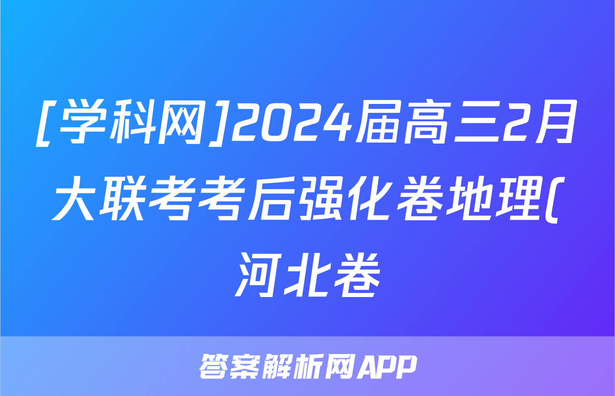 [学科网]2024届高三2月大联考考后强化卷地理(河北卷)试题正在持续更新,目前2026届黄冈八模答案网为大家整理了相关试题及答案,供大家查缺补漏,高效提升成绩。