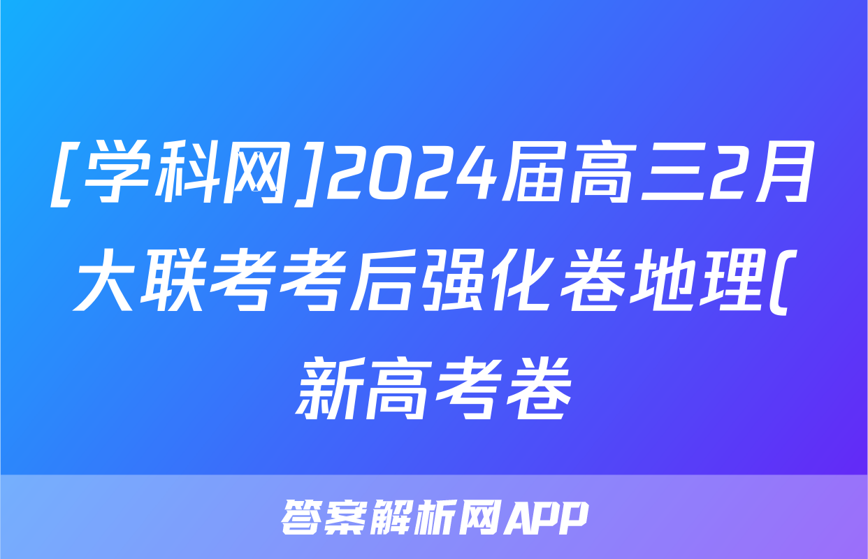 [学科网]2024届高三2月大联考考后强化卷地理(新高考卷)(新教材)试题正在持续更新,目前2026届黄冈八模答案网为大家整理了相关试题及答案,供大家查缺补漏,高效提升成绩。