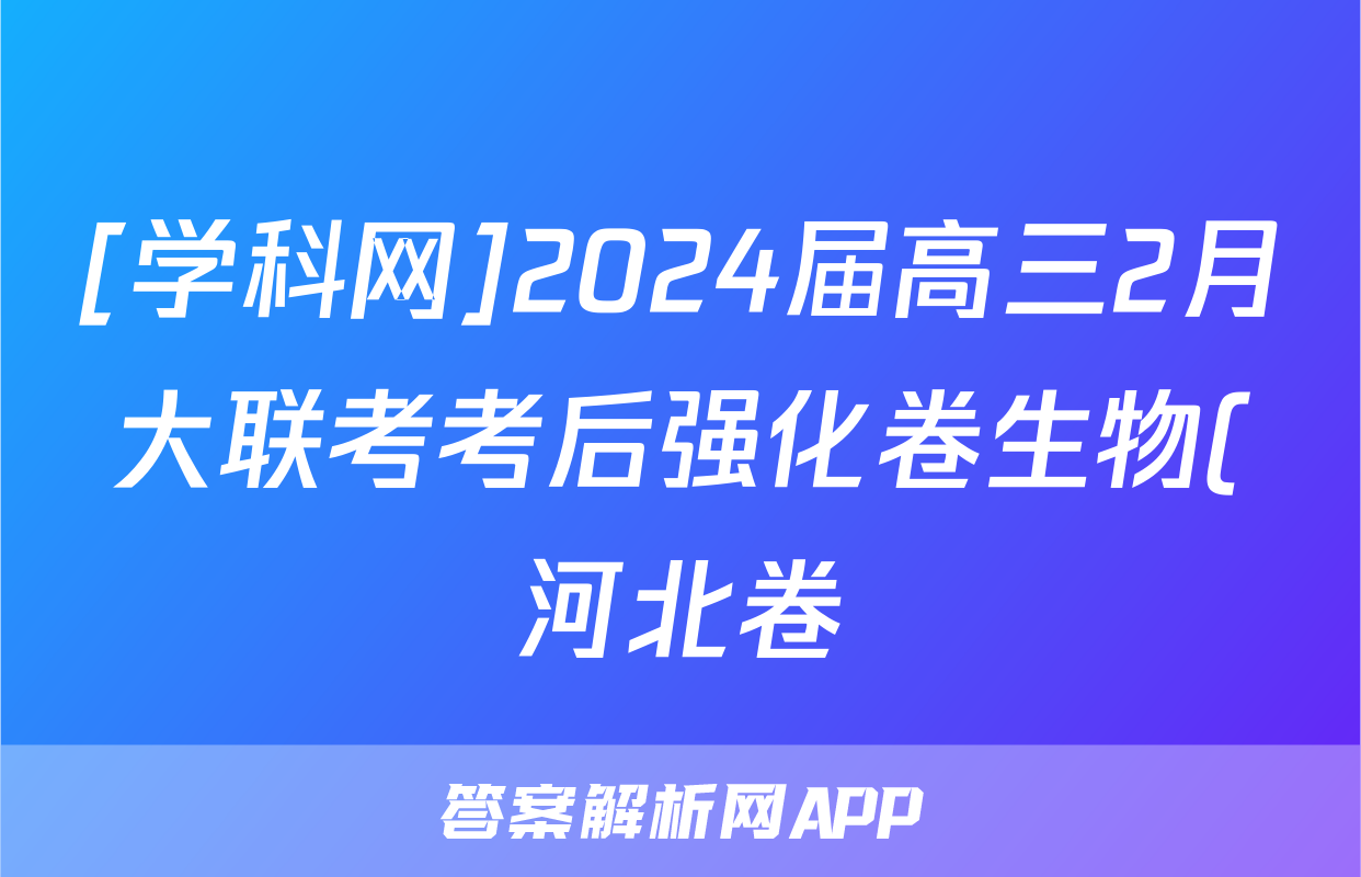 [学科网]2024届高三2月大联考考后强化卷生物(河北卷)试题正在持续更新,目前2026届黄冈八模答案网为大家整理了相关试题及答案,供大家查缺补漏,高效提升成绩。
