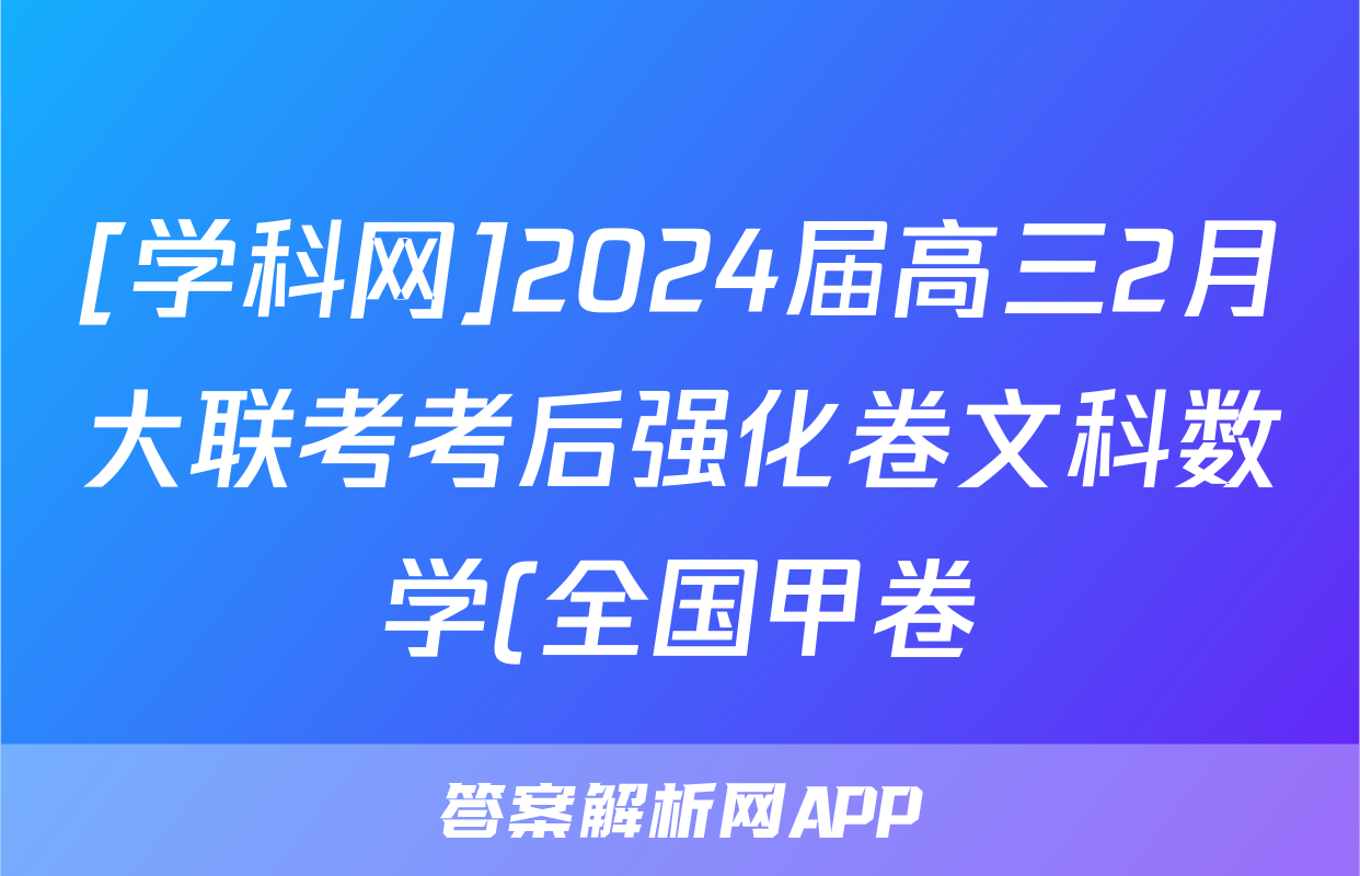 [学科网]2024届高三2月大联考考后强化卷文科数学(全国甲卷)试题正在持续更新,目前2026届黄冈八模答案网为大家整理了相关试题及答案,供大家查缺补漏,高效提升成绩。