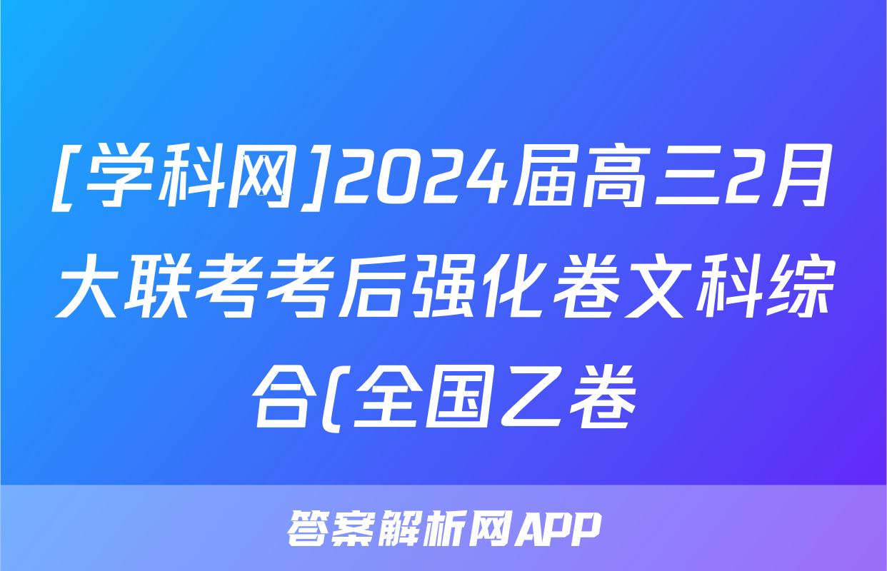 [学科网]2024届高三2月大联考考后强化卷文科综合(全国乙卷)答案正在持续更新,目前2026届黄冈八模答案网为大家整理了相关试题及答案,供大家查缺补漏,高效提升成绩。