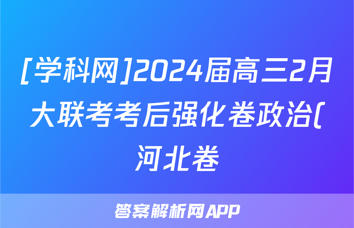 [学科网]2024届高三2月大联考考后强化卷政治(河北卷)试题正在持续更新,目前2026届黄冈八模答案网为大家整理了相关试题及答案,供大家查缺补漏,高效提升成绩。