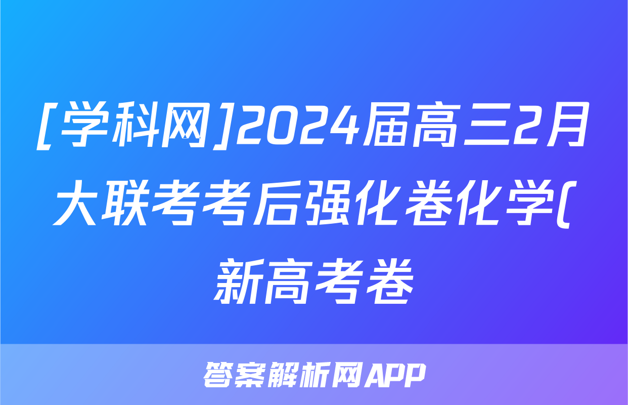 [学科网]2024届高三2月大联考考后强化卷化学(新高考卷)(新教材)答案正在持续更新,目前2026届黄冈八模答案网为大家整理了相关试题及答案,供大家查缺补漏,高效提升成绩。