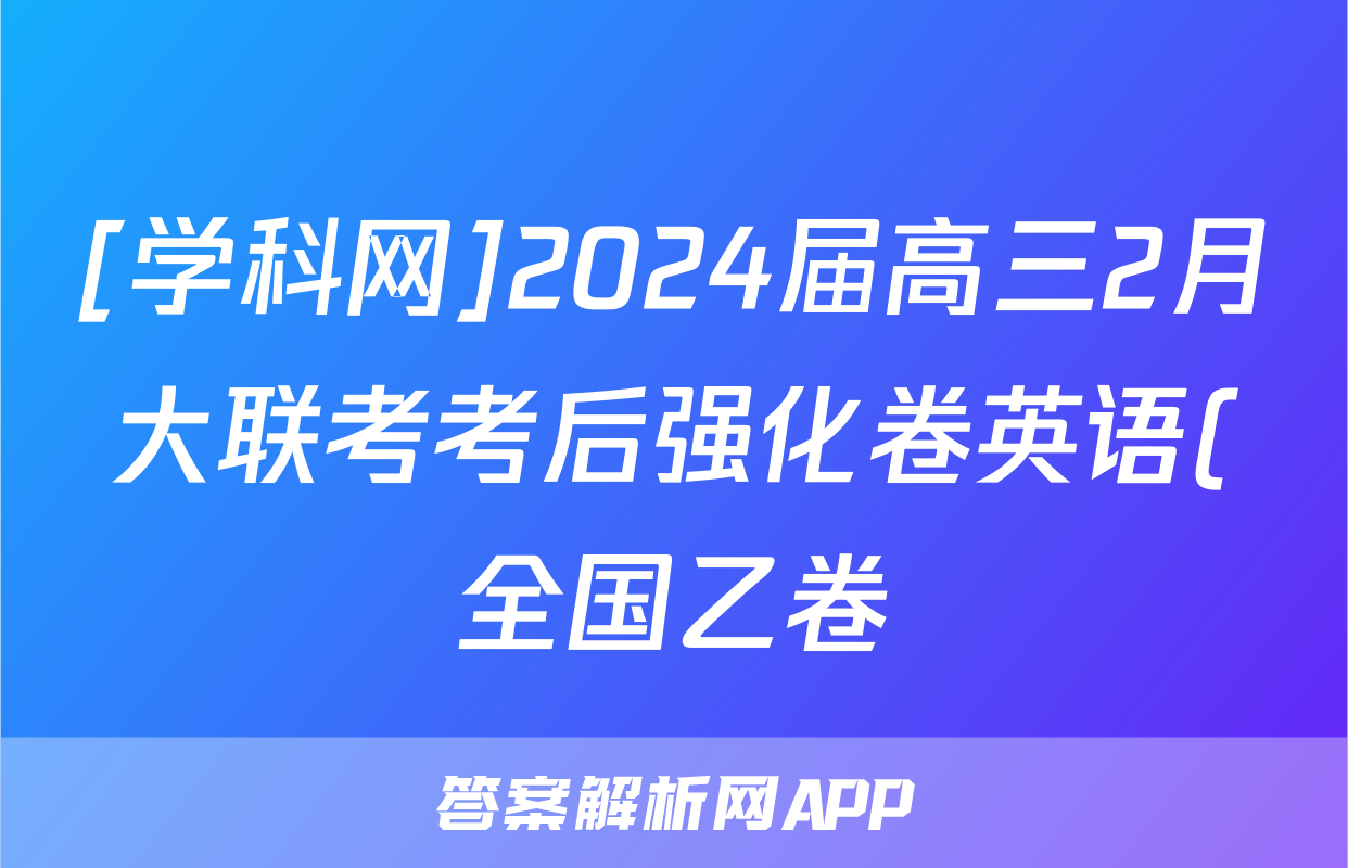 [学科网]2024届高三2月大联考考后强化卷英语(全国乙卷)答案正在持续更新,目前2026届黄冈八模答案网为大家整理了相关试题及答案,供大家查缺补漏,高效提升成绩。