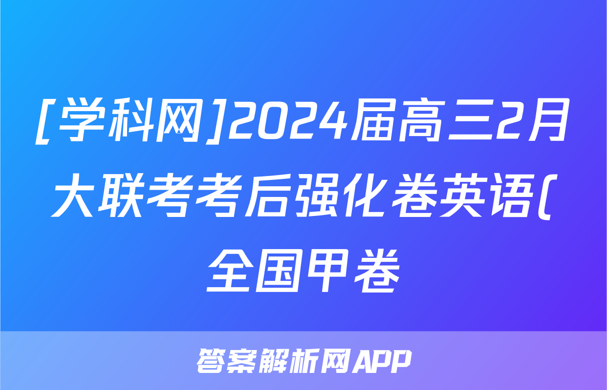 [学科网]2024届高三2月大联考考后强化卷英语(全国甲卷)答案正在持续更新,目前2026届黄冈八模答案网为大家整理了相关试题及答案,供大家查缺补漏,高效提升成绩。