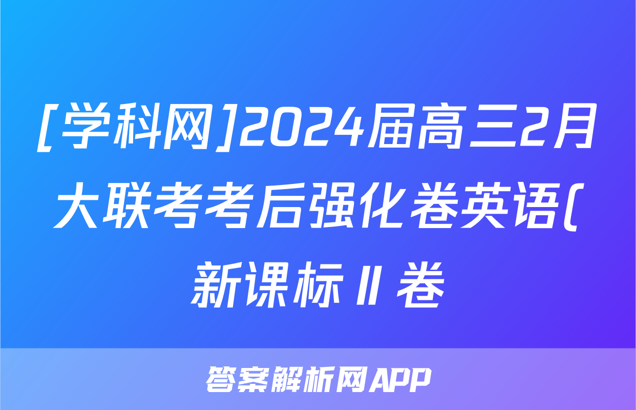 [学科网]2024届高三2月大联考考后强化卷英语(新课标Ⅱ卷)试题正在持续更新,目前2026届黄冈八模答案网为大家整理了相关试题及答案,供大家查缺补漏,高效提升成绩。