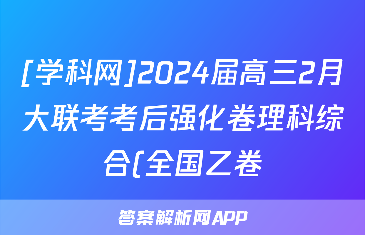 [学科网]2024届高三2月大联考考后强化卷理科综合(全国乙卷)答案正在持续更新,目前2026届黄冈八模答案网为大家整理了相关试题及答案,供大家查缺补漏,高效提升成绩。
