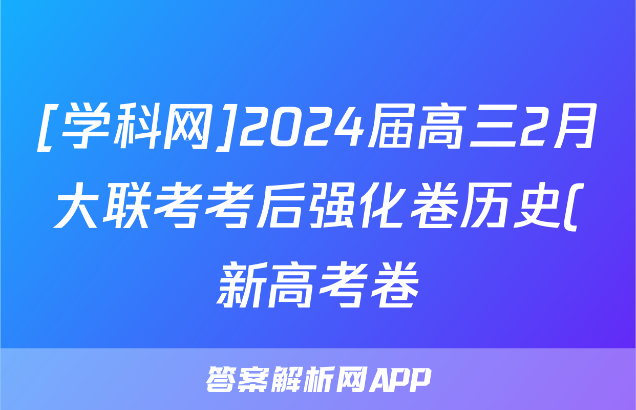 [学科网]2024届高三2月大联考考后强化卷历史(新高考卷)(新教材)答案正在持续更新,目前2026届黄冈八模答案网为大家整理了相关试题及答案,供大家查缺补漏,高效提升成绩。