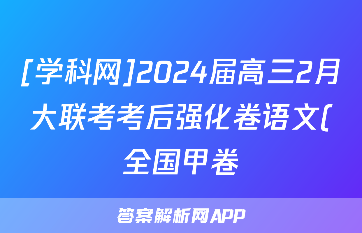 [学科网]2024届高三2月大联考考后强化卷语文(全国甲卷)试题正在持续更新,目前2026届黄冈八模答案网为大家整理了相关试题及答案,供大家查缺补漏,高效提升成绩。