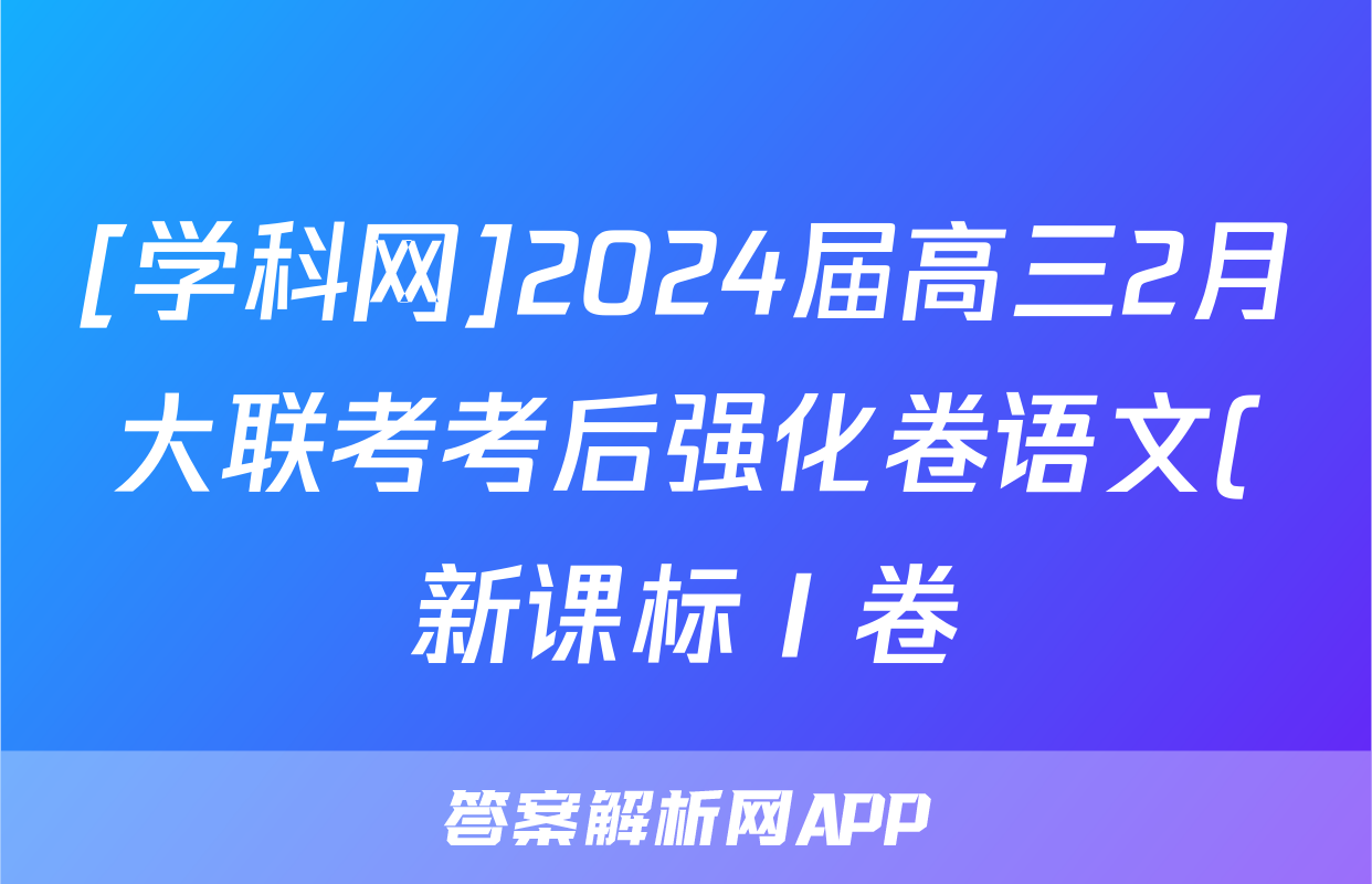 [学科网]2024届高三2月大联考考后强化卷语文(新课标Ⅰ卷)试题正在持续更新,目前2026届黄冈八模答案网为大家整理了相关试题及答案,供大家查缺补漏,高效提升成绩。