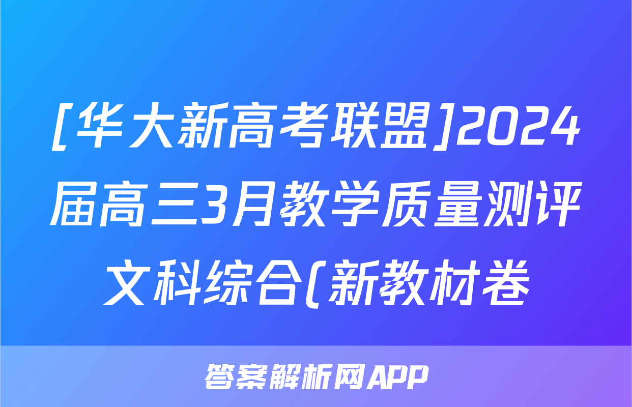 [华大新高考联盟]2024届高三3月教学质量测评文科综合(新教材卷)试题正在持续更新,目前2026届黄冈八模答案网为大家整理了相关试题及答案,供大家查缺补漏,高效提升成绩。