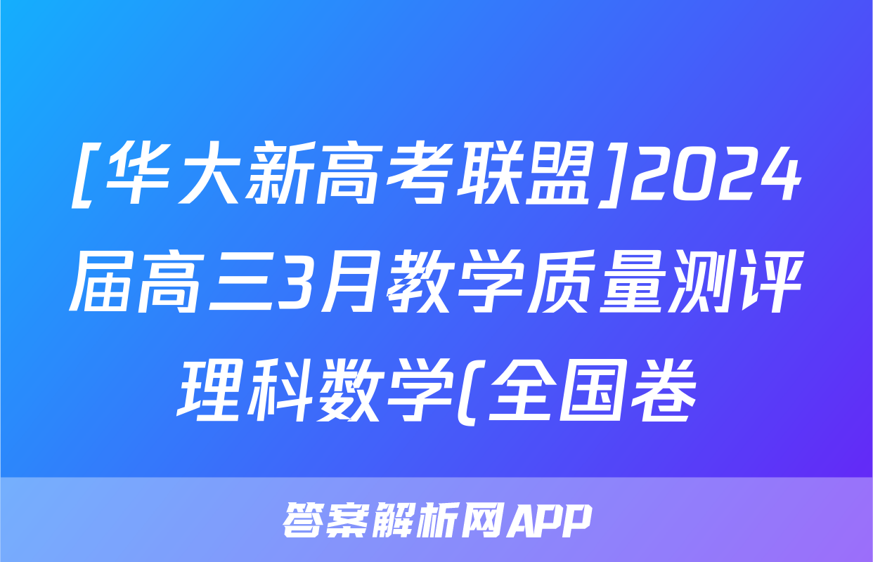 [华大新高考联盟]2024届高三3月教学质量测评理科数学(全国卷)试题正在持续更新,目前2026届黄冈八模答案网为大家整理了相关试题及答案,供大家查缺补漏,高效提升成绩。